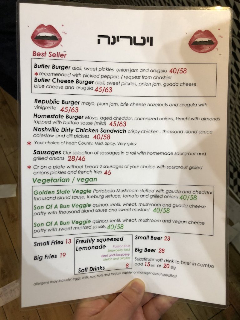 「ヴィトリーナ(Vitrina)」は、テルアビブで最も人気のハンバーガー屋と言ってよい評判のお店です。