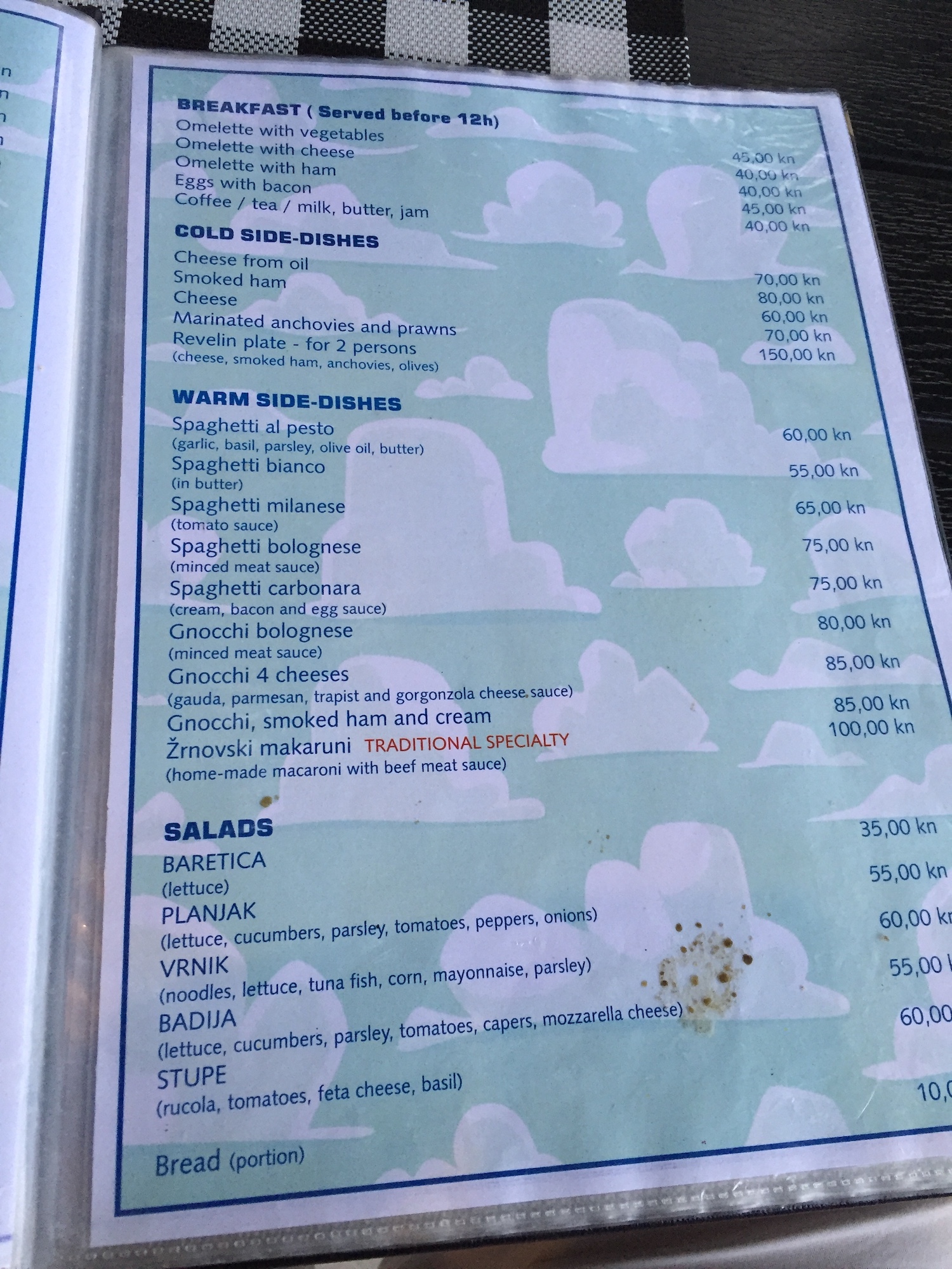 コルチュラ島の郷土料理が「Žrnovski Makaruni」。つまりはミートソースのマカロニ。肩の力が抜けた感じで、抜群に美味しいです。